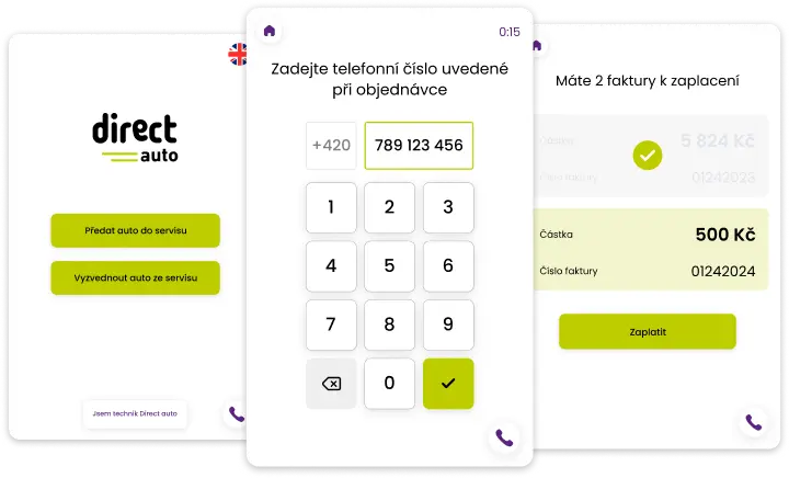 Na webu cesta zákazníka nekončí... Pro Direct auto jsme měli příležitost navrhnout kompletní proces objednání do servisu až po samotné předání klíčků od auta. V dnešní době je čas nejcennější komodita. Je tak namístě jít zákazníkům naproti a poskytnout jim službu, díky které mohou své auto předat do servisu, kdy se jim to hodí. Třeba o půlnoci. K tomu slouží tzv. KeyBox, do kterého klient bezpečně uloží klíčky od auta a servis si je druhý den přebere. Navrhli jsme uživatelské rozhraní KeyBoxu, do kterého se klient přihlásí a pomocí kterého servis i zaplatí.