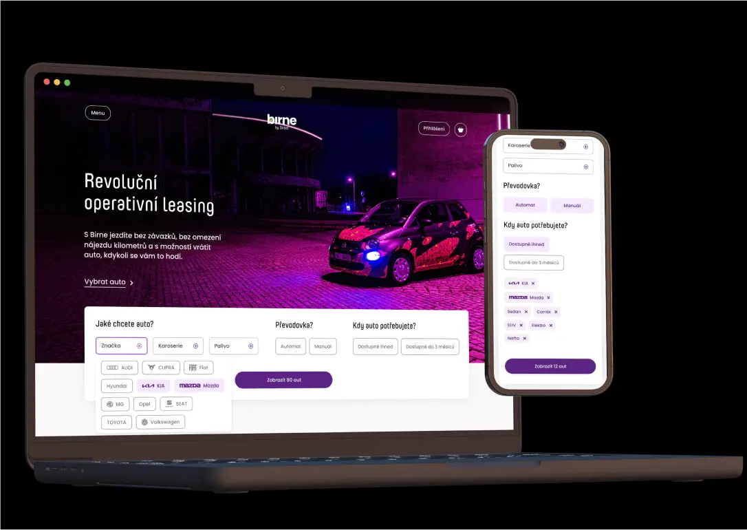 Birne je nový poskytovatel operativních leasingů. Ale nejedná se o klasický operák, s Birne můžete jezdit bez omezení na kilometrech, auto můžete vrátit, kdy chcete a spoustu dalších výhod. Pro tuto službu bylo potřeba vytvořit nový web, na čemž jsme se podíleli.