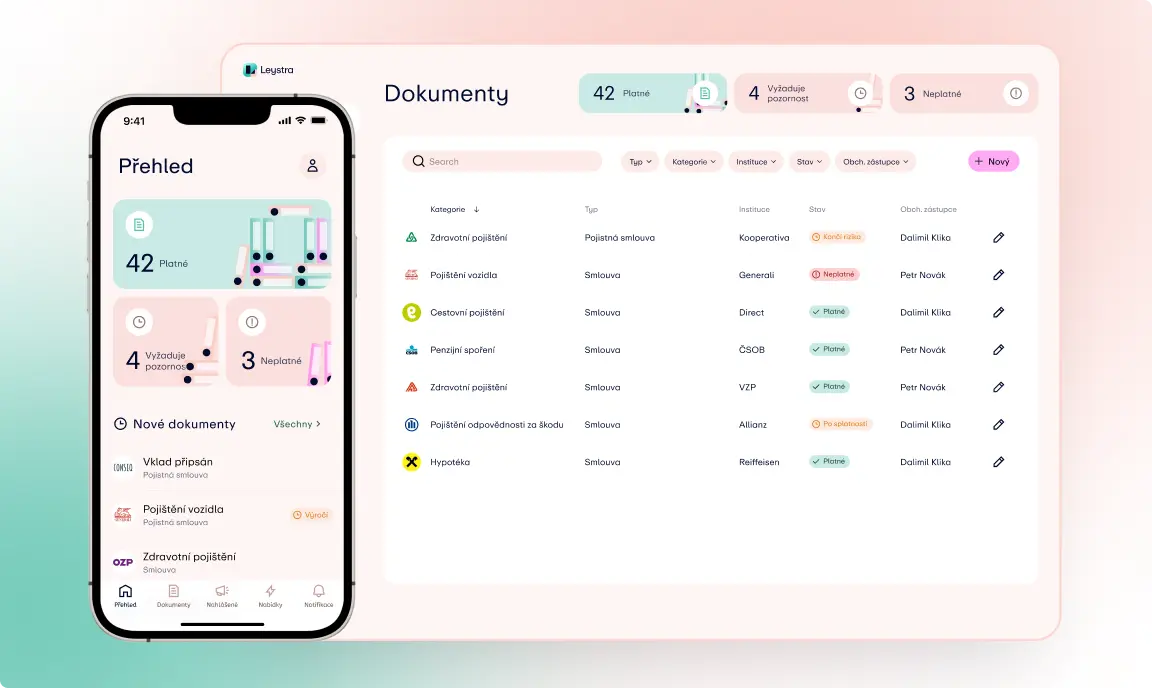 Leystra je finanční startup poskytující službu, díky které finanční poradci získají přístup k smlouvám svých klientů. Klient podepíše plnou moc pomocí bankID a aplikace už se o vše postará sama. Hlavním kanálem je mobilní aplikace, kterou jsme vyvíjeli na míru.