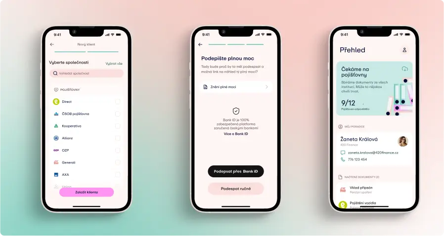 Výběr technologií pro bezpečnou aplikaci Jakmile máme představu o potřebách klienta, jsme schopni vybrat správné technologie, které při vývoji použijeme. V tomto případě hlavní funkcionality apky fungují pomocí API. Proto jsme vybrali moderní .net framework, který veškeré operace zvládá bezchybně. Pro ověření totožnosti klientů a následný podpis plné moci používáme službu BankID. Jedním bezpečným přihlášením do svého bankovnictví ušetří klient dlouhé papírování a podepisování.